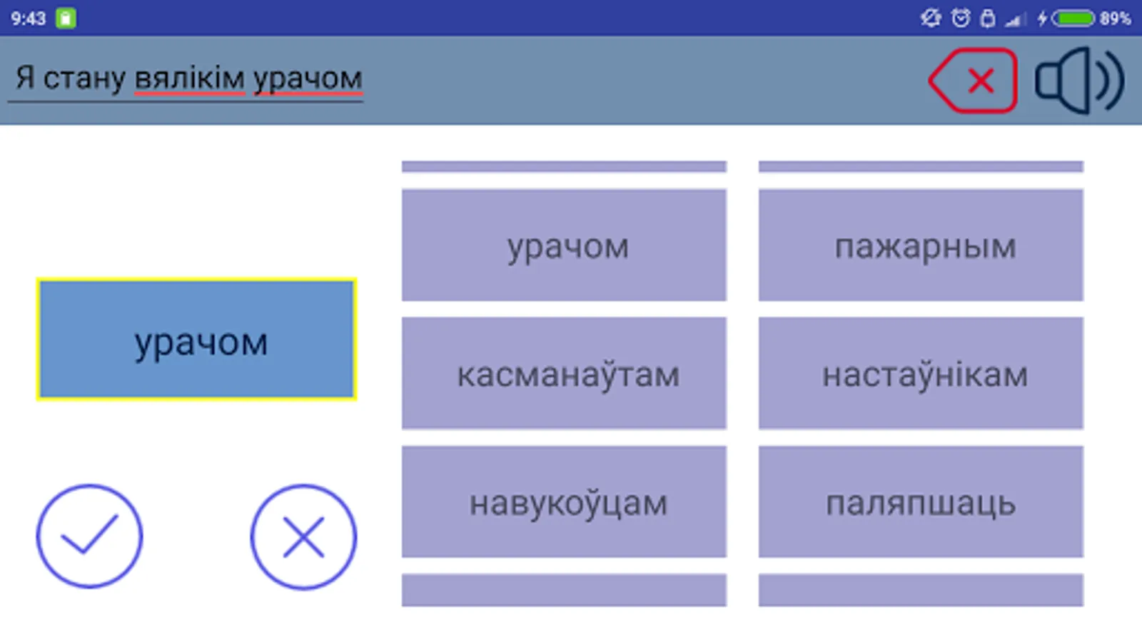 compose a phrase or a short text according to the rules of the Belarusian language in just a few touches;
