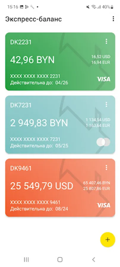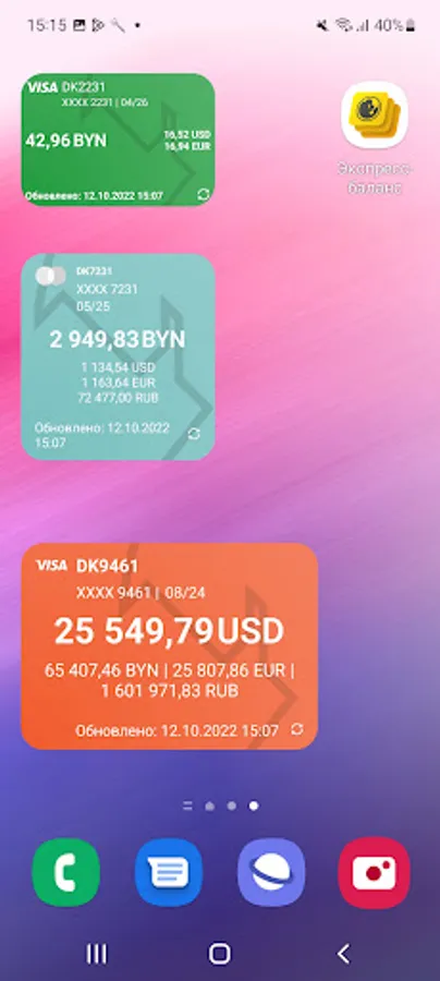 Application Express enables you to add balance to the desktop widget mobile device / you to view the balance on the bank card. The application is available to clients of Priorbank, have at least one card of Priorbank, regardless of whether they are in the remote banking system (Internet banking, mobile application) are registered or not.