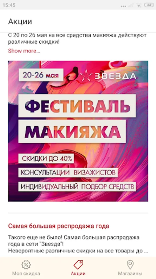 The loyalty program "Star" is a cumulative discount of up to 15%, a discount on the birthday of 20% and an additional discount for each item in the check.