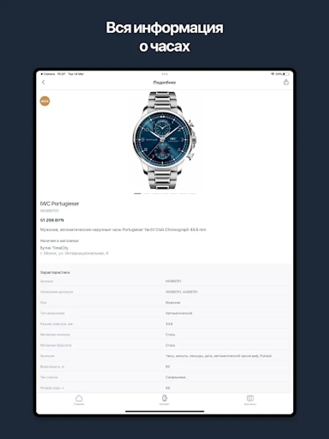 - Detailed description of the watch (characteristics, price, photo, etc.)
