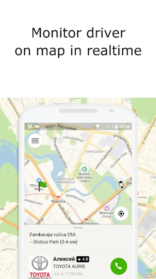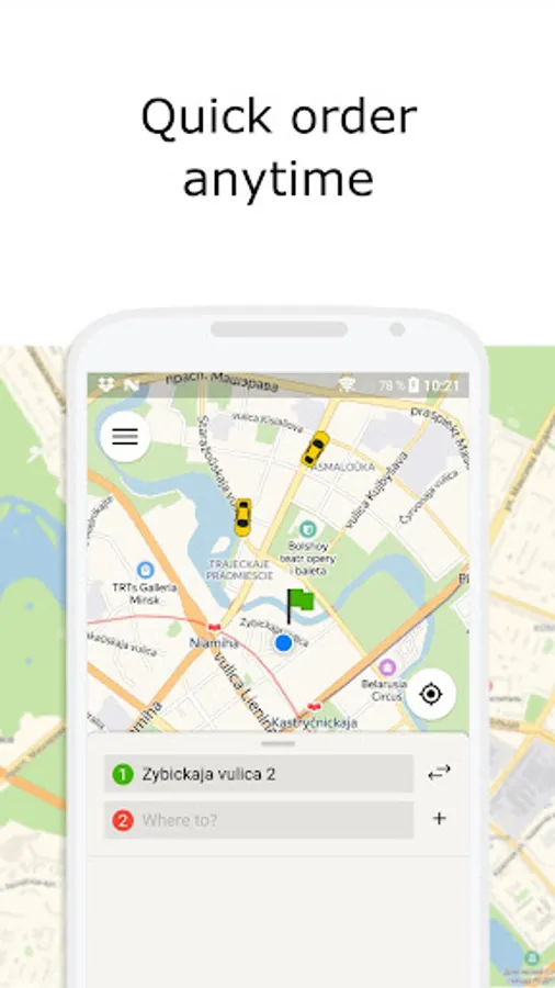The application automatically determines your location. Enter the final address, and we will find the nearest free driver.