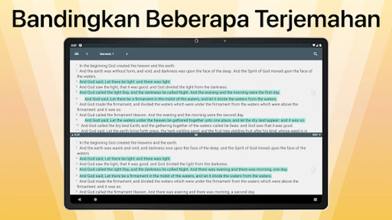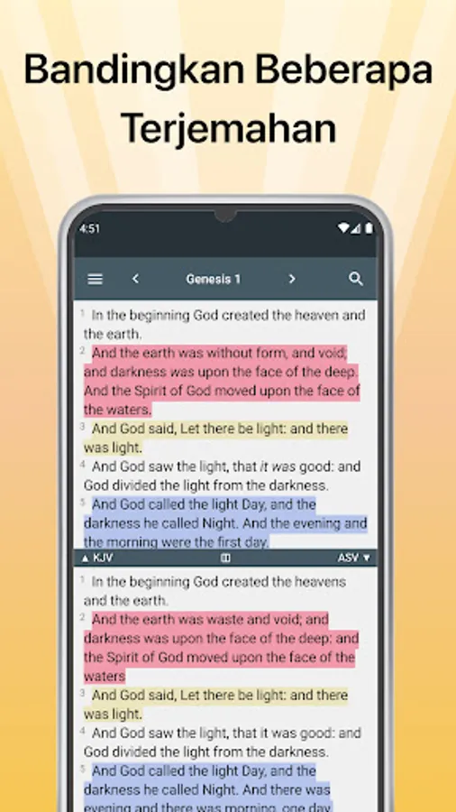 Compares the translated version of the Bible that is displayed with the 'split screen' two views. Learn God's word easily in multiple languages on one screen.