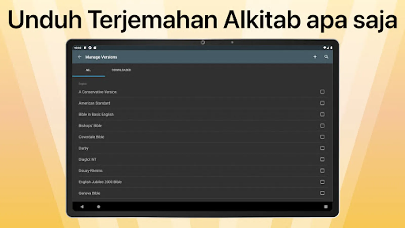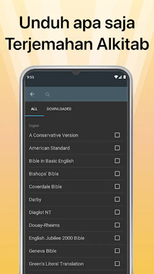 There are translated versions of the Bible in modern and ancient Indonesian, regional/tribal languages, the original language of the Bible (Greek/Hebrew), and foreign languages. Each version is simply downloaded/downloaded once, after that it can be read offline.