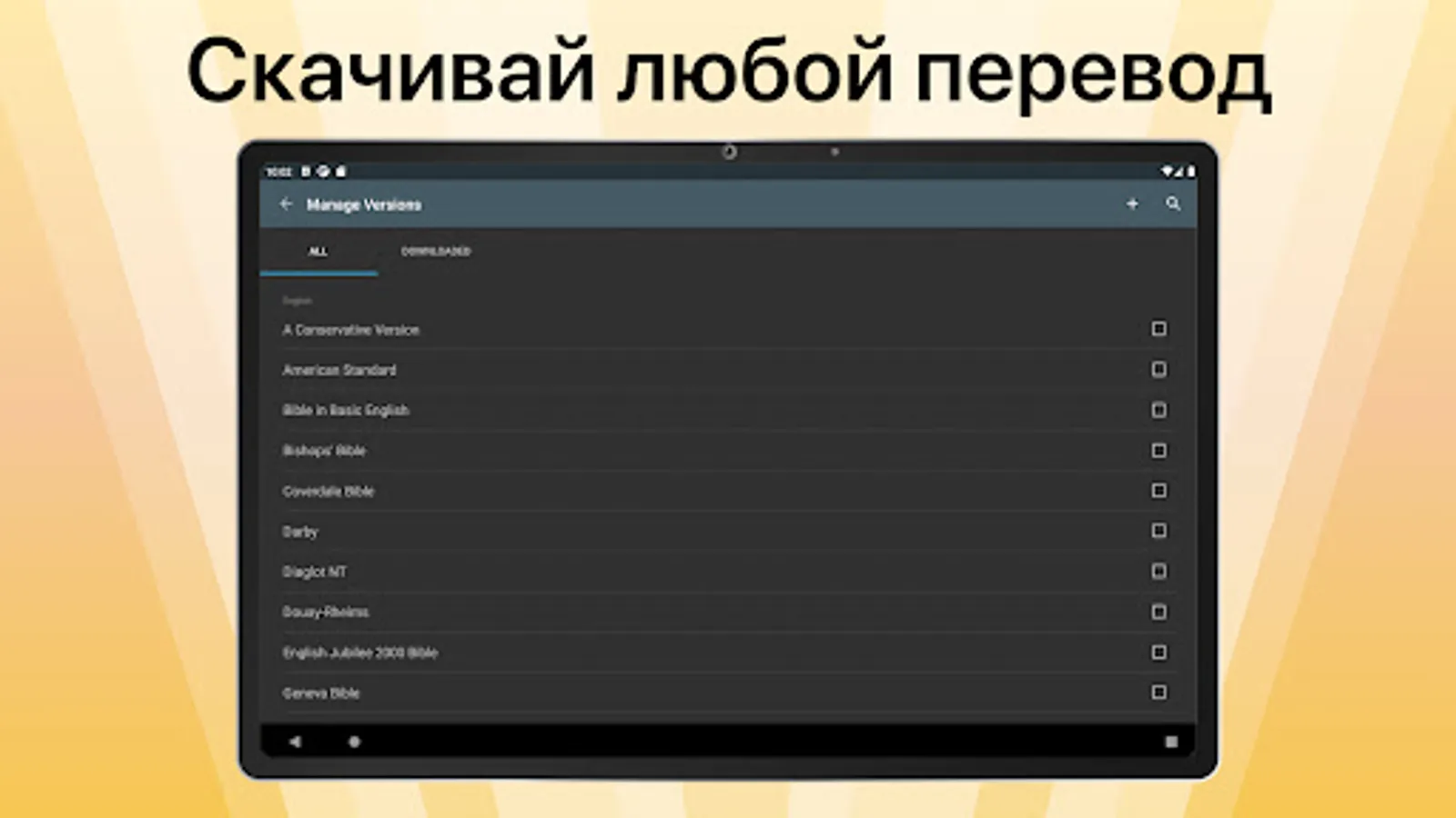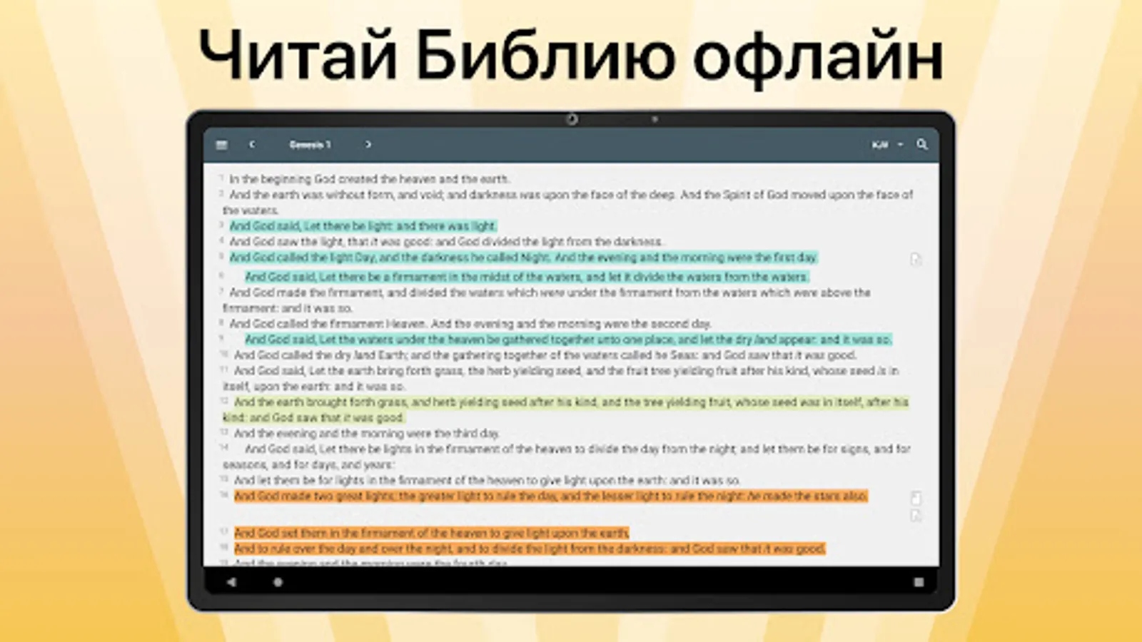 The application will allow you to read the Bible without an Internet connection and offline for free, as well as: