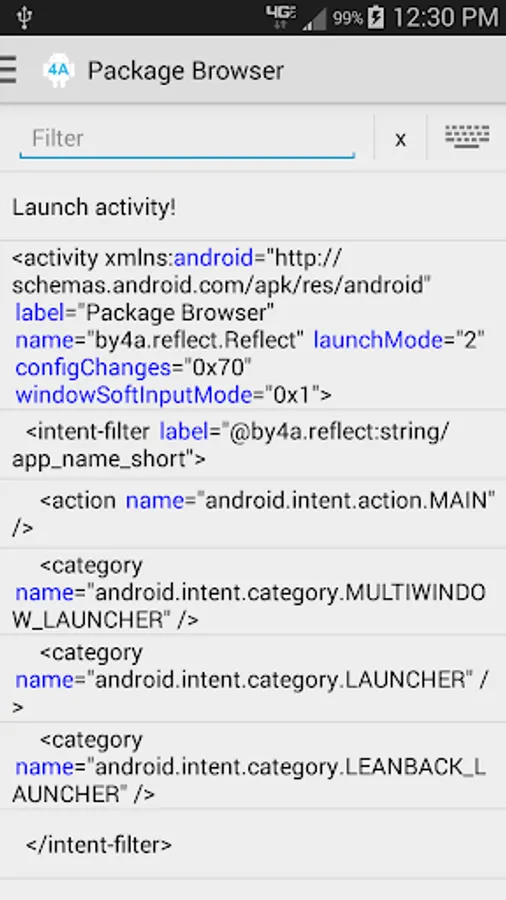 * permissions defined and consumed, protection levels, whether permissions are granted or withheld and the reason