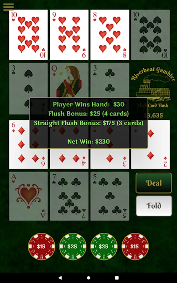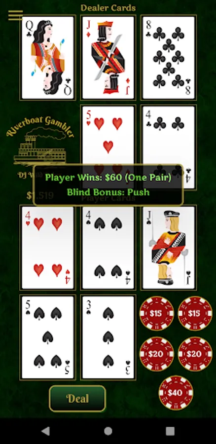 You will be amazed at the realism of your experience. Players are saying that they are becoming more proficient at the live games by practicing with Riverboat Gambler.