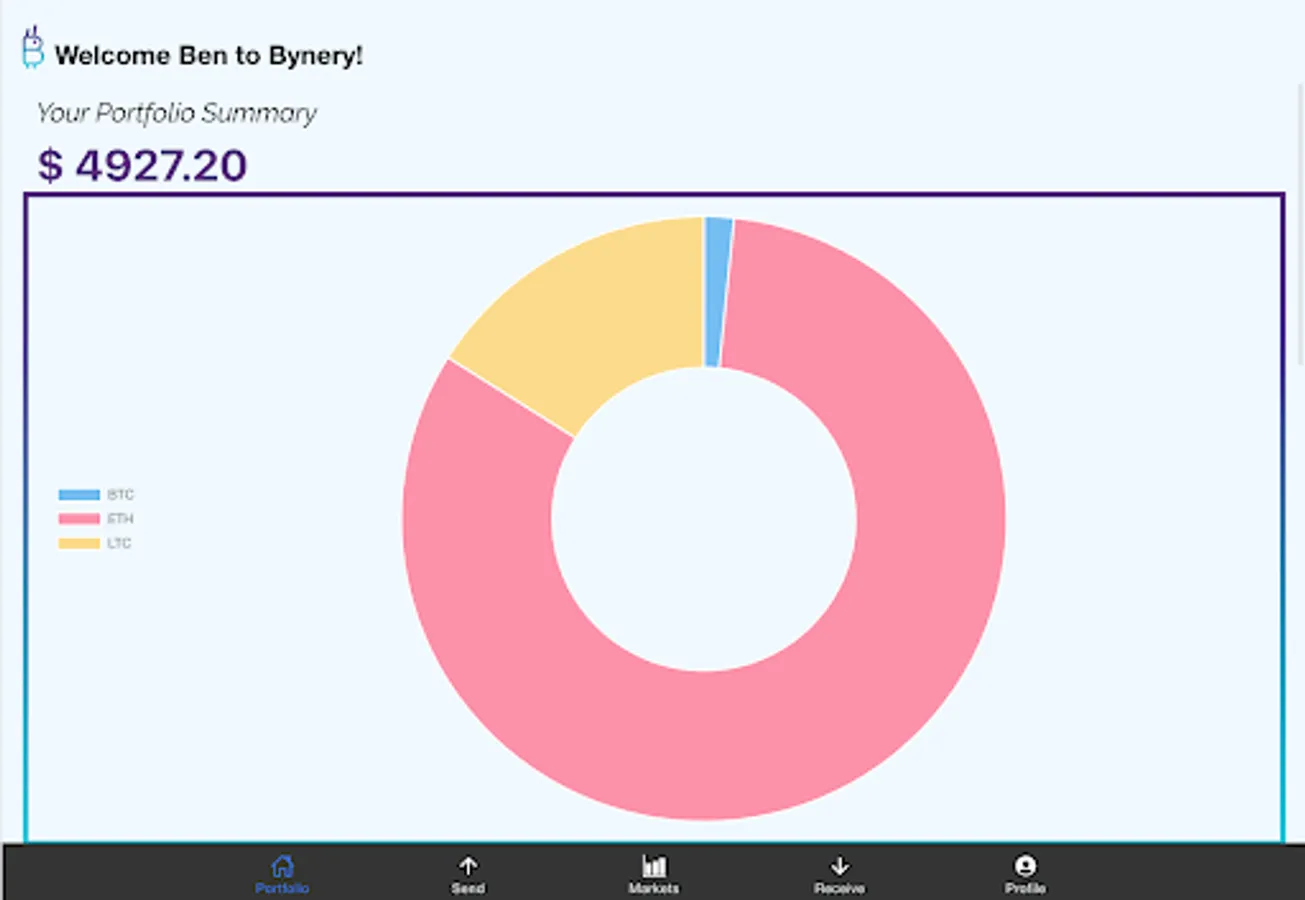 Bynery is a cryptocurrency platform for receiving, sending, storing, and exchanging cryptocurrencies (coming soon). Bynery is very secure and user friendly. Currently we support wallets for Bitcoin, Ethereum, and Litecoin, with many more on the way.