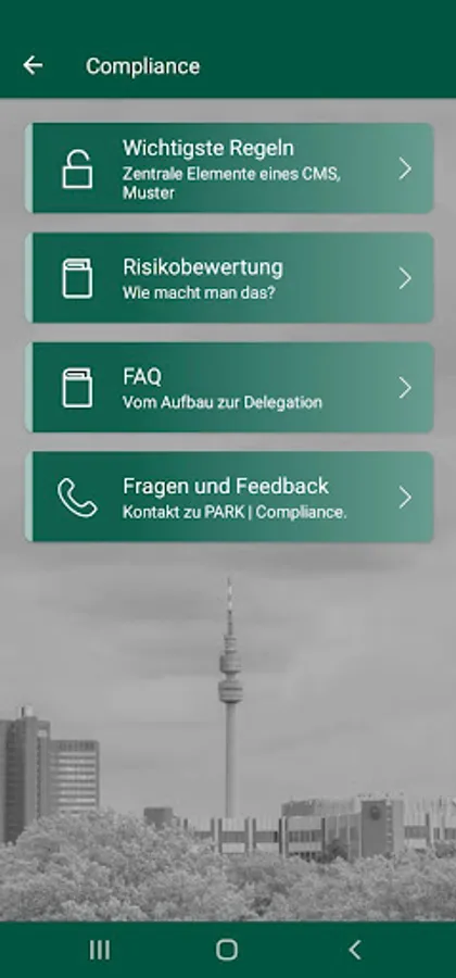 With the PARK Compliance app, PARK | commercial criminal law. an app that prepares you for an emergency. Keep all information in one central place and inform key people with just one click.