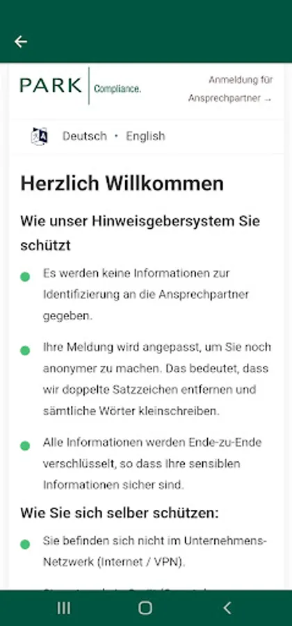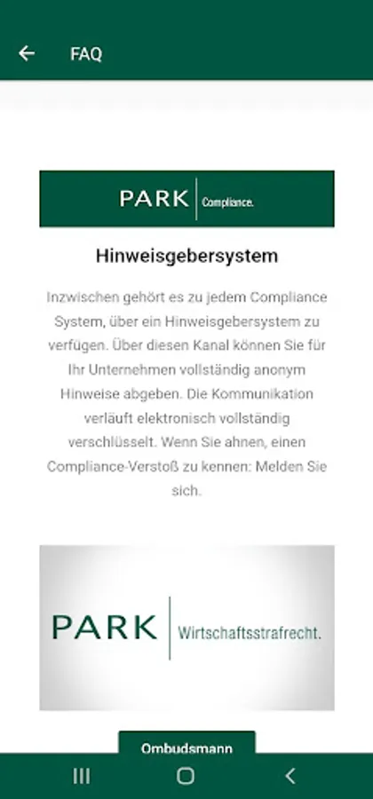 With the Whistleblower Protection Act, companies must create an opportunity to report information anonymously and securely. The protection of the whistleblower is the top priority. The PARK.whistle-blower solution tool is presented in the PARK Compliance app and is available to you for test purposes.