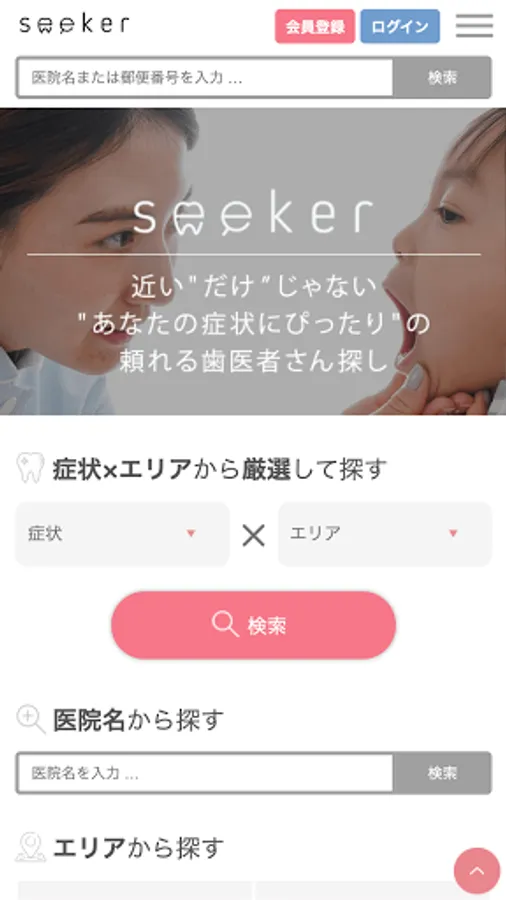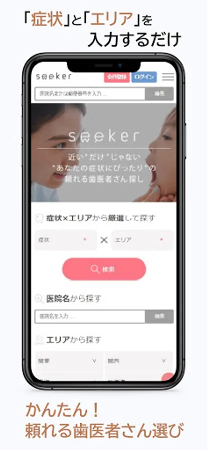 Simply select "Your Symptoms Now" and "Area" to find the perfect dentist for you.