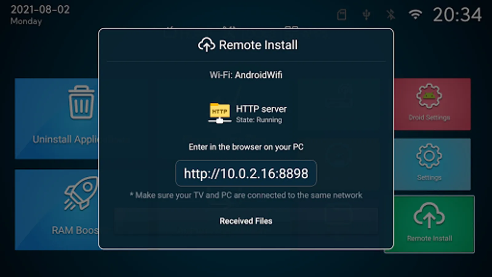- Remote file upload using built-in HTTP server (also FTP server is coming soon)