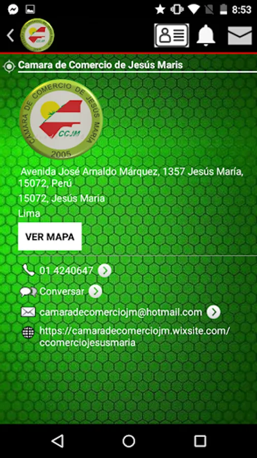 The Jesus Maria Chamber of Commerce is a Non-Profit Civil Association. It was founded by Ing. Agustin Cisneros Zarango It was created with the aim of promoting the development of commercial, social and cultural relations between businessmen and merchants in the district and throughout Peru