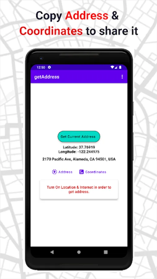 getAddress is a simple app that locates your current location and provides an accurate address with the respective coordinates. So whenever anyone asks for your current address you simply provide them or you can also copy the coordinates or address to send them via any medium.
