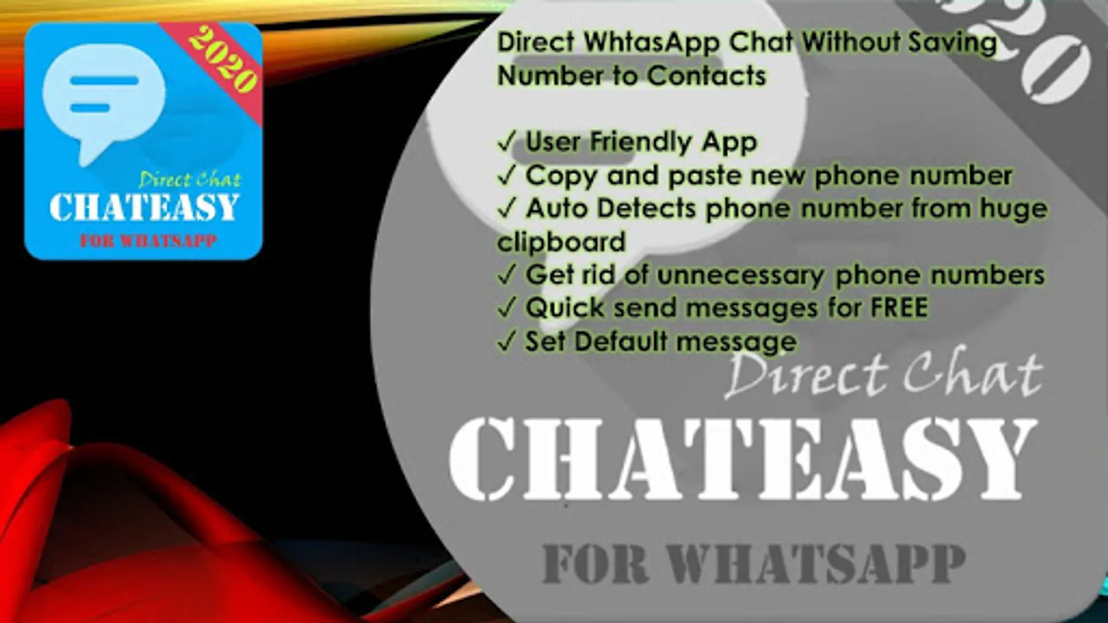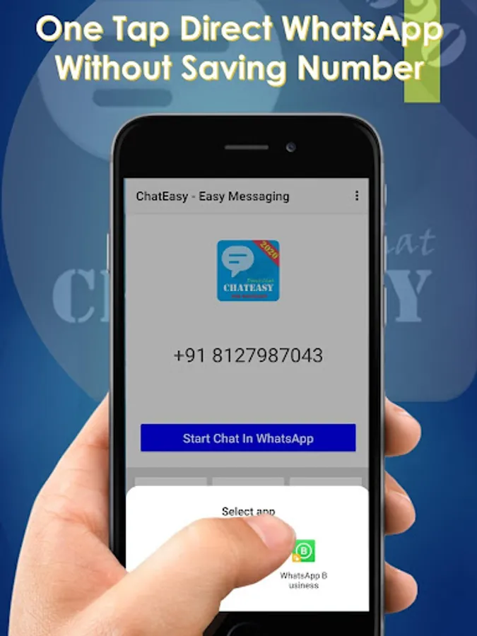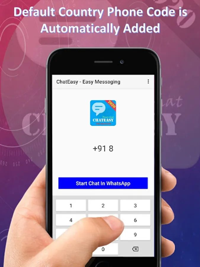 Now you can quickly send messages to any phone number which are not in your contact list. Use “ChatEasy - Easy Messaging” App and send direct WhatsApp message to unsaved phone number. ChatEasy - Easy Messaging app is a convenient app for those who do not want to save a phone number to contacts before they send WhatsApp message.