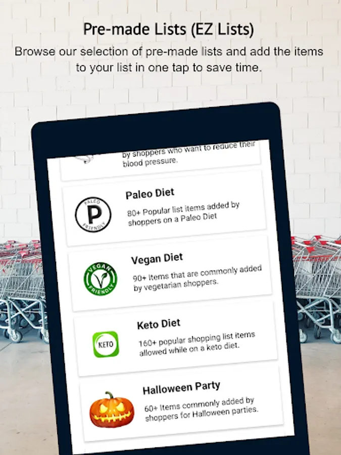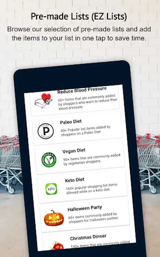 4. EZ Lists for Quick Additions: Our "EZ Lists" feature allows you to add a large selection of pre-selected items with just one tap, saving you time and effort.