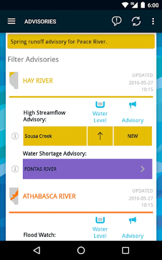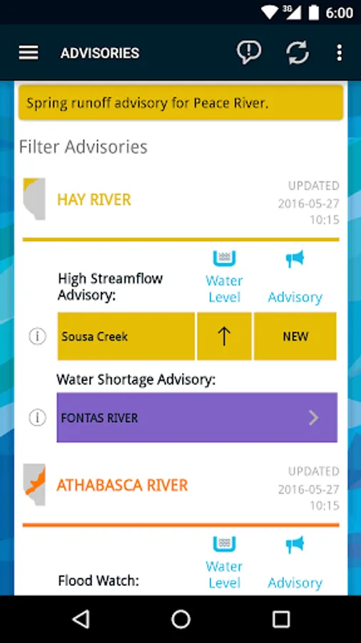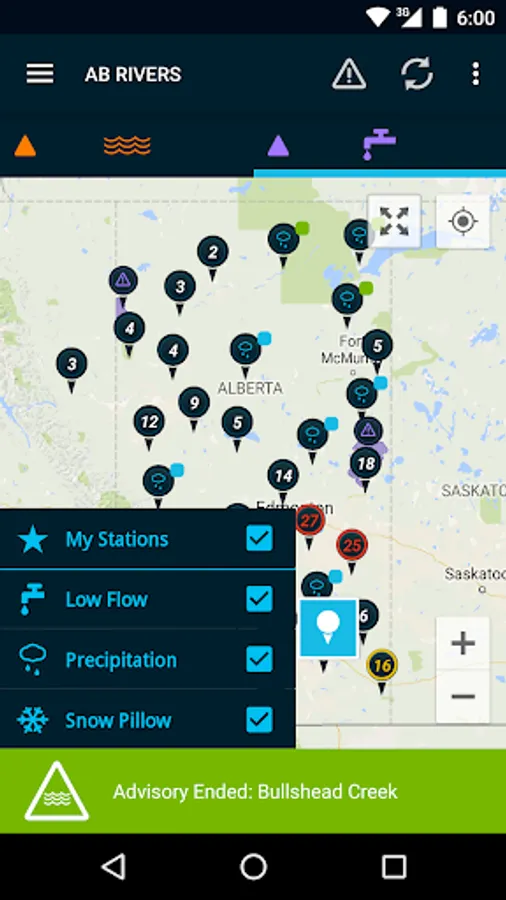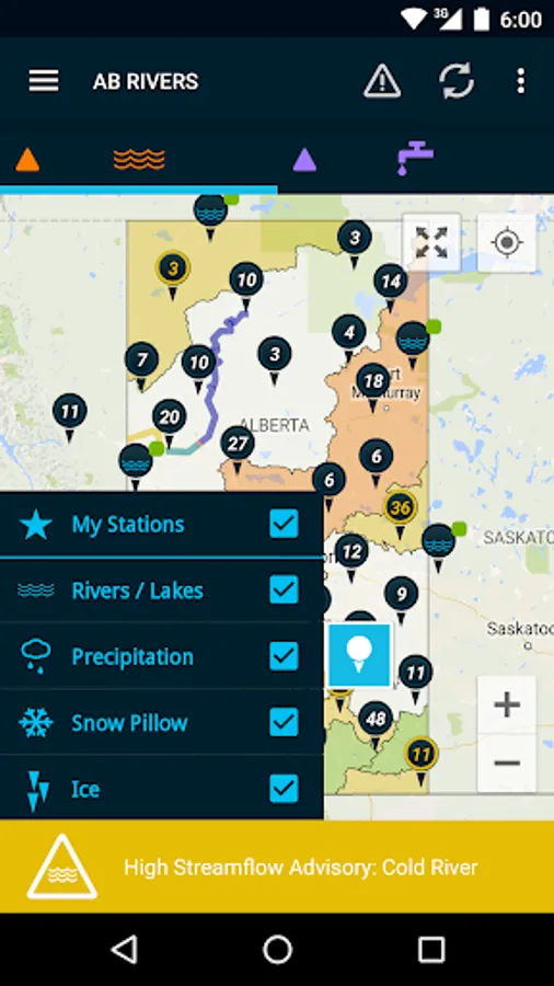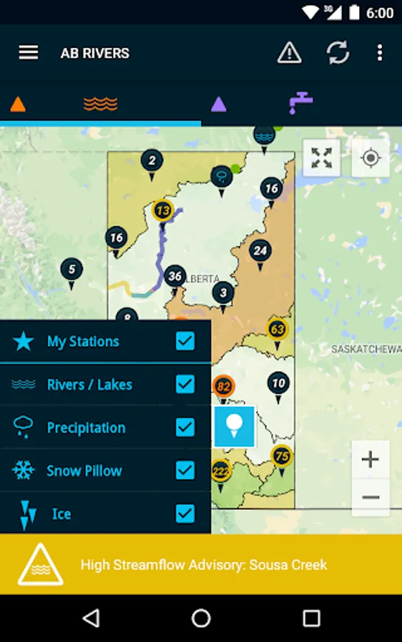 Obtain the latest information about Alberta’s rivers, including flood advisories and comments issued by Alberta’s River Forecast Centre. View all current surface water data for Alberta.