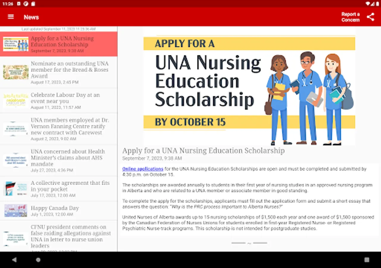 The United Nurses of Alberta app connects nurses with their union. This app provides direct links to breaking news, collective agreements, resources and more.