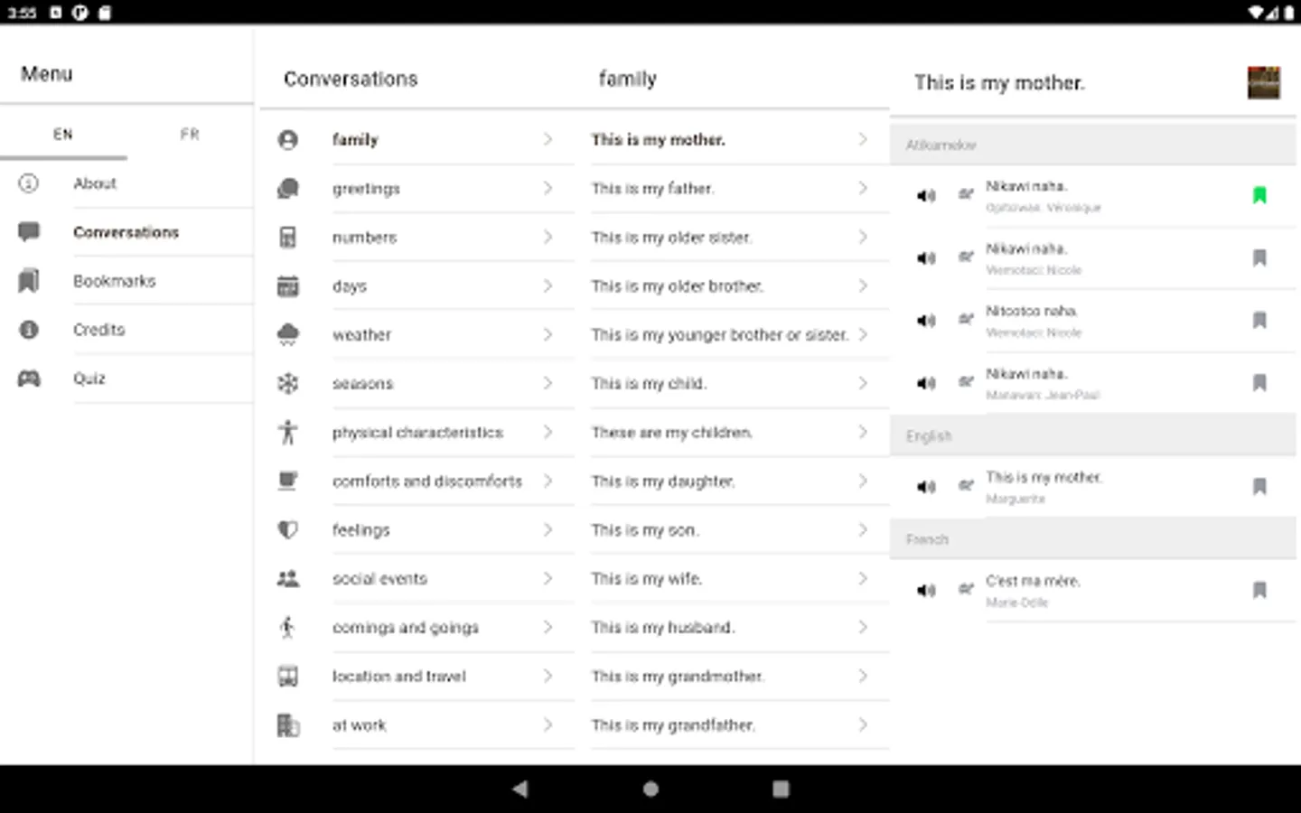 Discover 21 topics of conversation in Atikamekw, featuring speakers from various communities in Quebec, Canada.