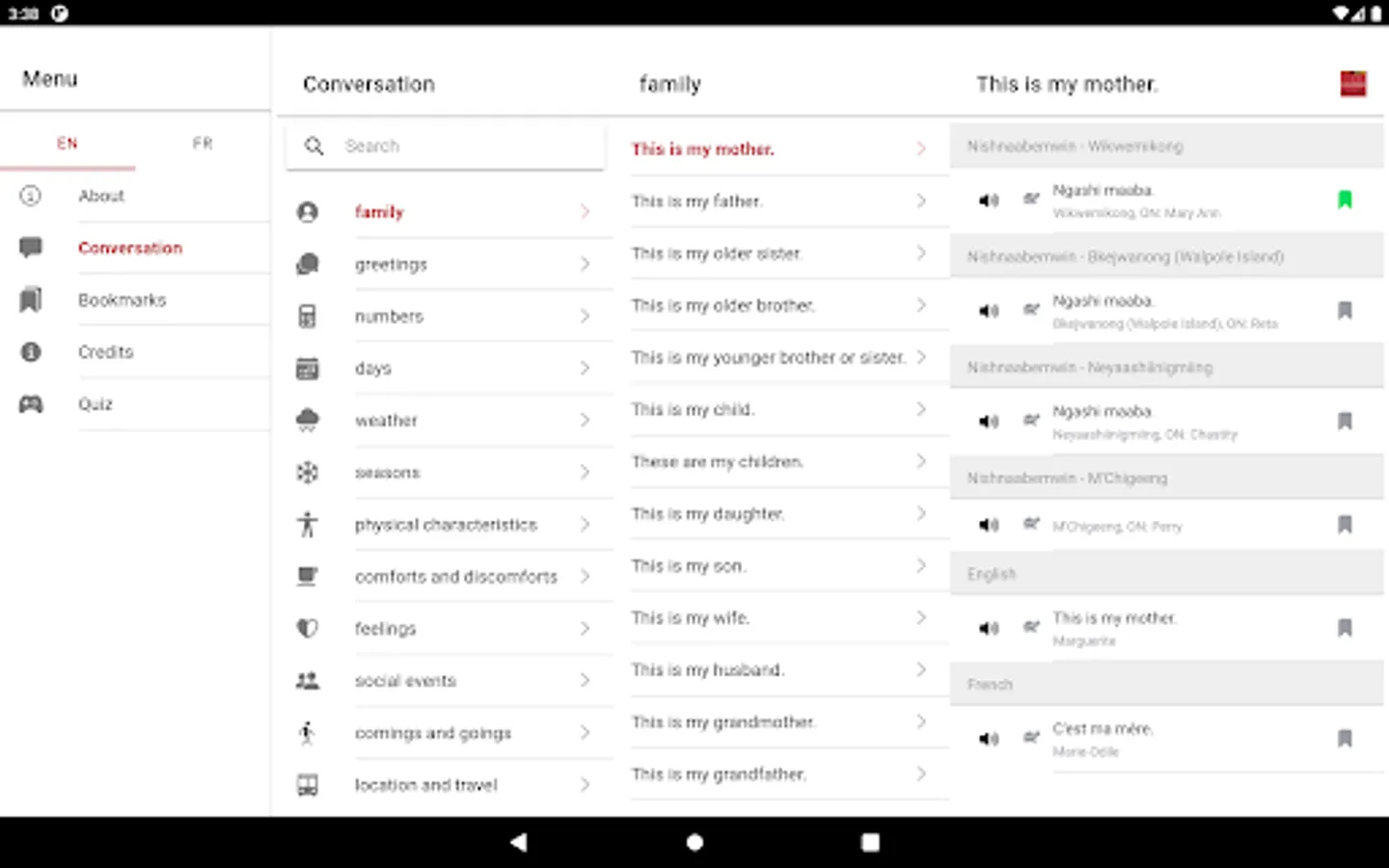 Discover 21 topics of conversation in Nishnaabemwin, featuring speakers from several communities in Ontario, Canada.