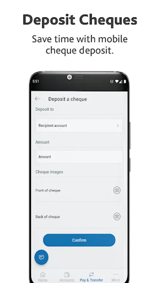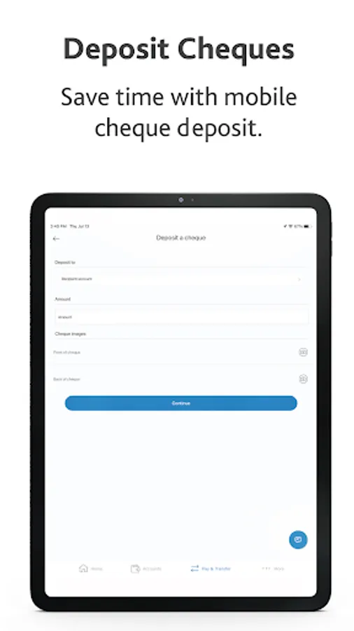 • Quickly and securely deposit cheques – all you need to do is take a picture with your phone or tablet.