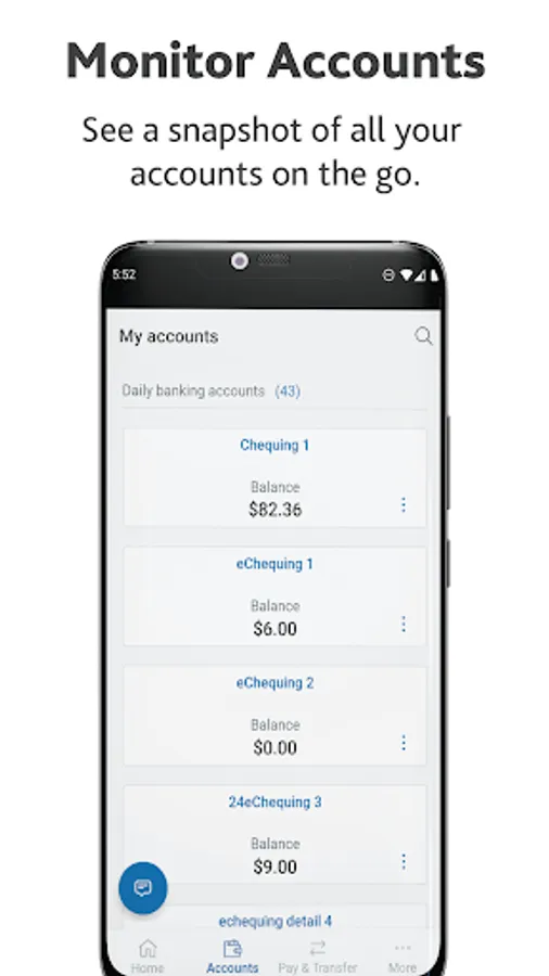 • Use our transfer feature to transfer to and from your accounts in another financial institution
