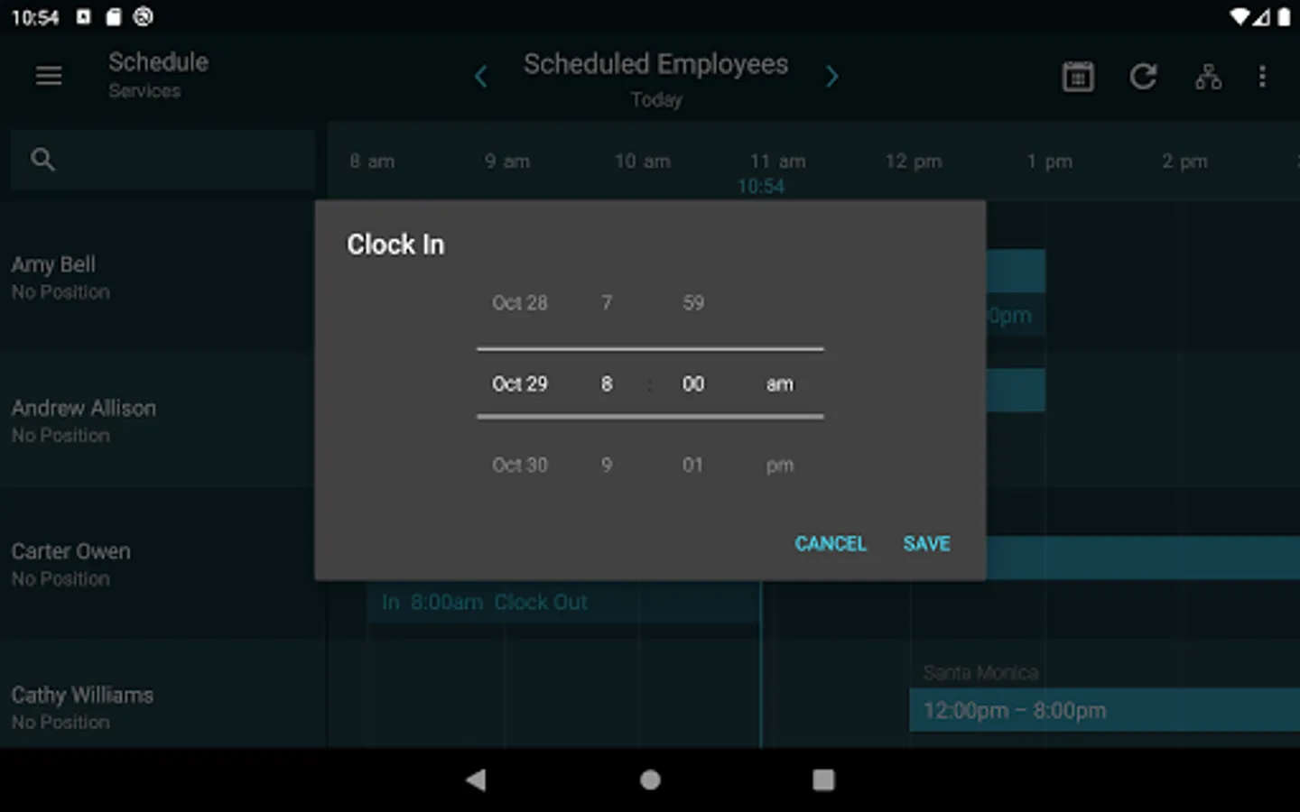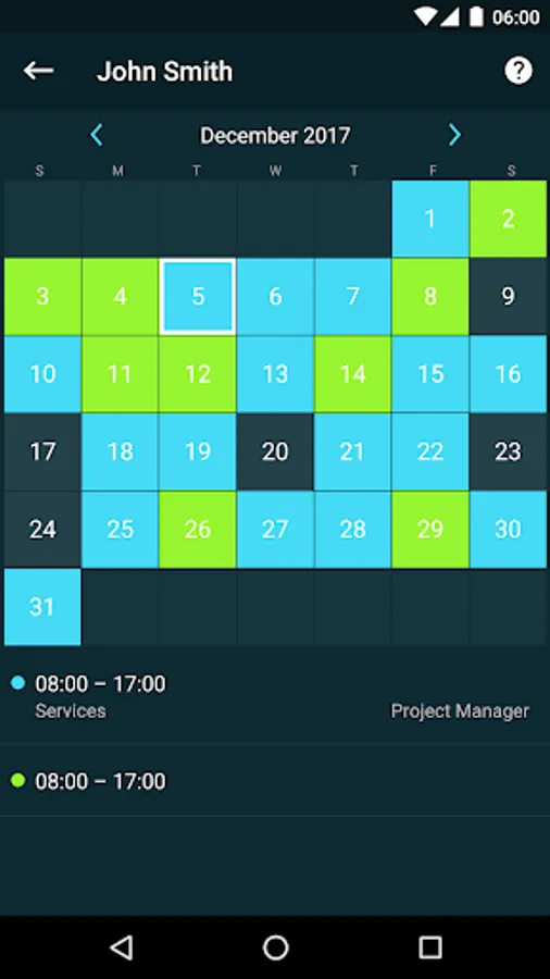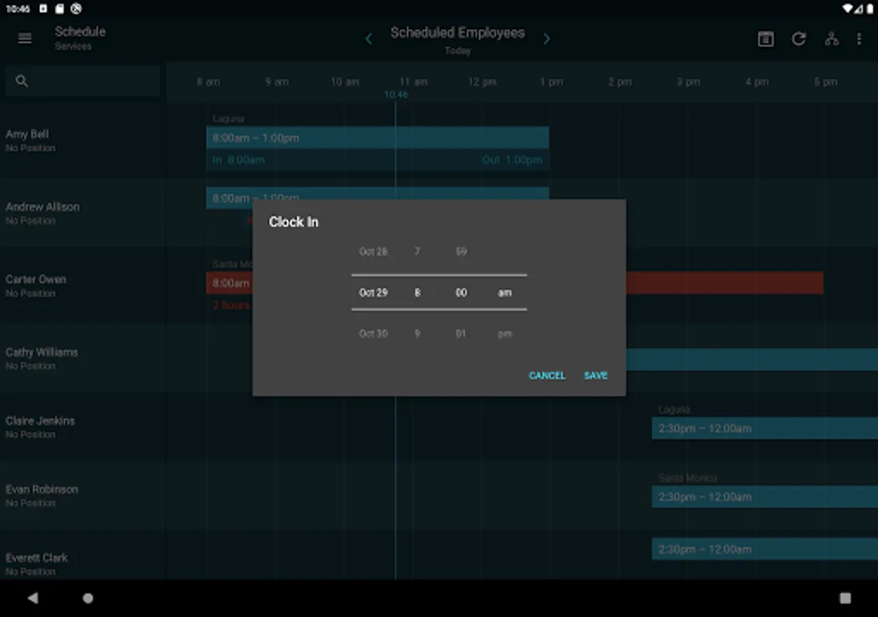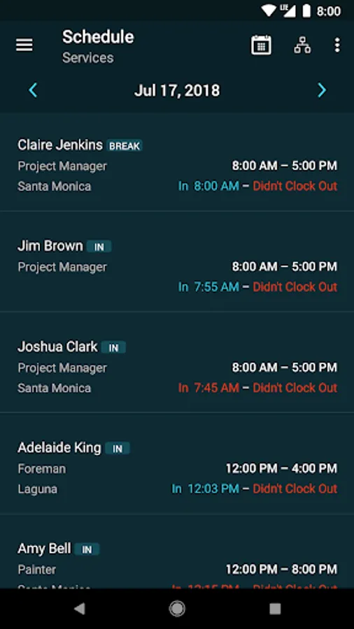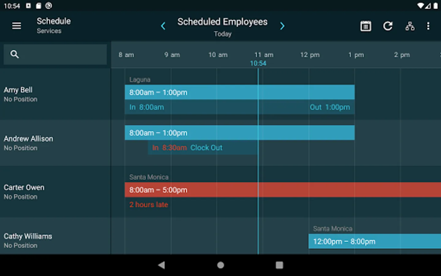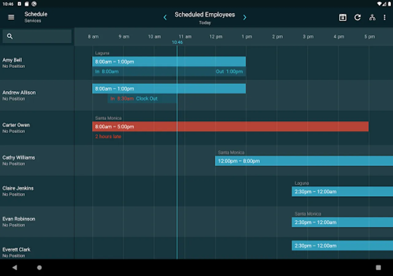 • Quickly see who’s currently working and who’s scheduled to work on any given day
