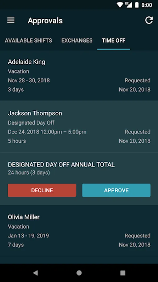 • Approve time off, shift exchanges and available shift requests