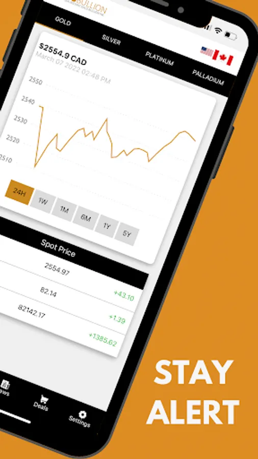 With the volatility and prices always fluctuating, it's hard to stay up to date with the latest information about the precious metals market. Take advantage of our app, this is your all in one destination for precious metals investing and collecting. Customers will be able to keep up with the most recent news and updates in the precious metals industry. Additionally, they will be able to analyze the live spot price for Gold, Silver, Platinum and Palladium in our live charts section.