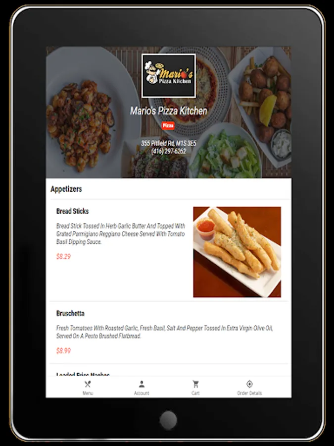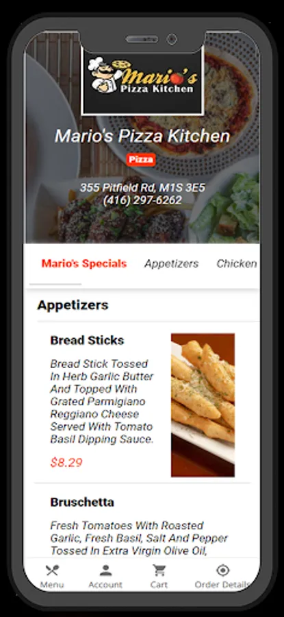 Food ordering app for the Mario's Pizza Kitchen restaurant, located in Scarborough.