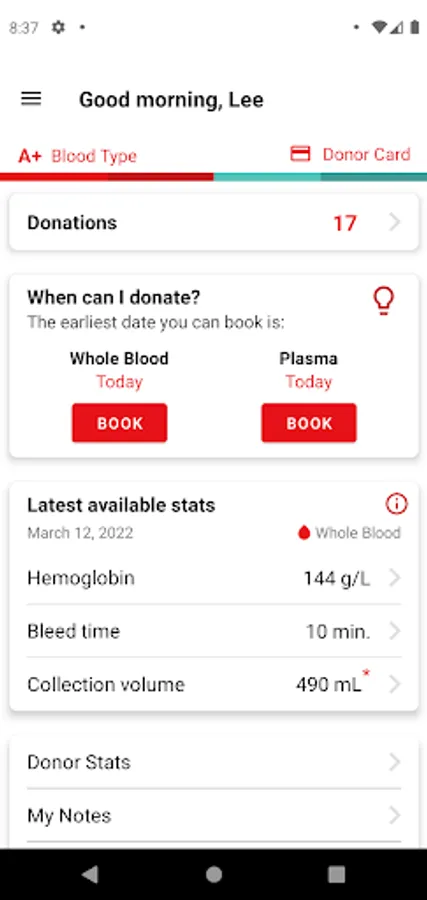 GiveBlood is available in English and French. The displayed version corresponds to the language that you have selected in your device settings.
