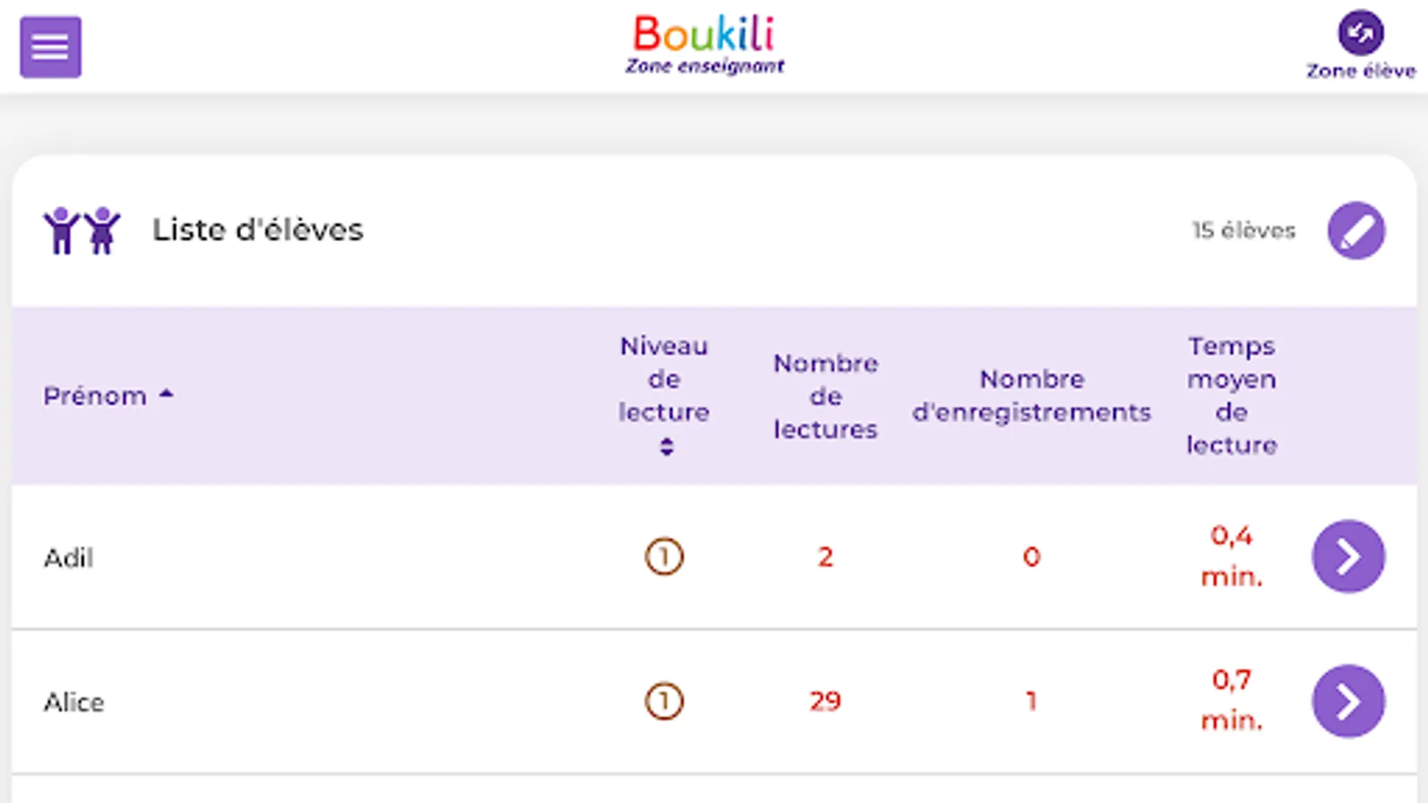 Boukili is a customizable tool for teachers, parents and children. Teachers have access to a dashboard allowing them to: