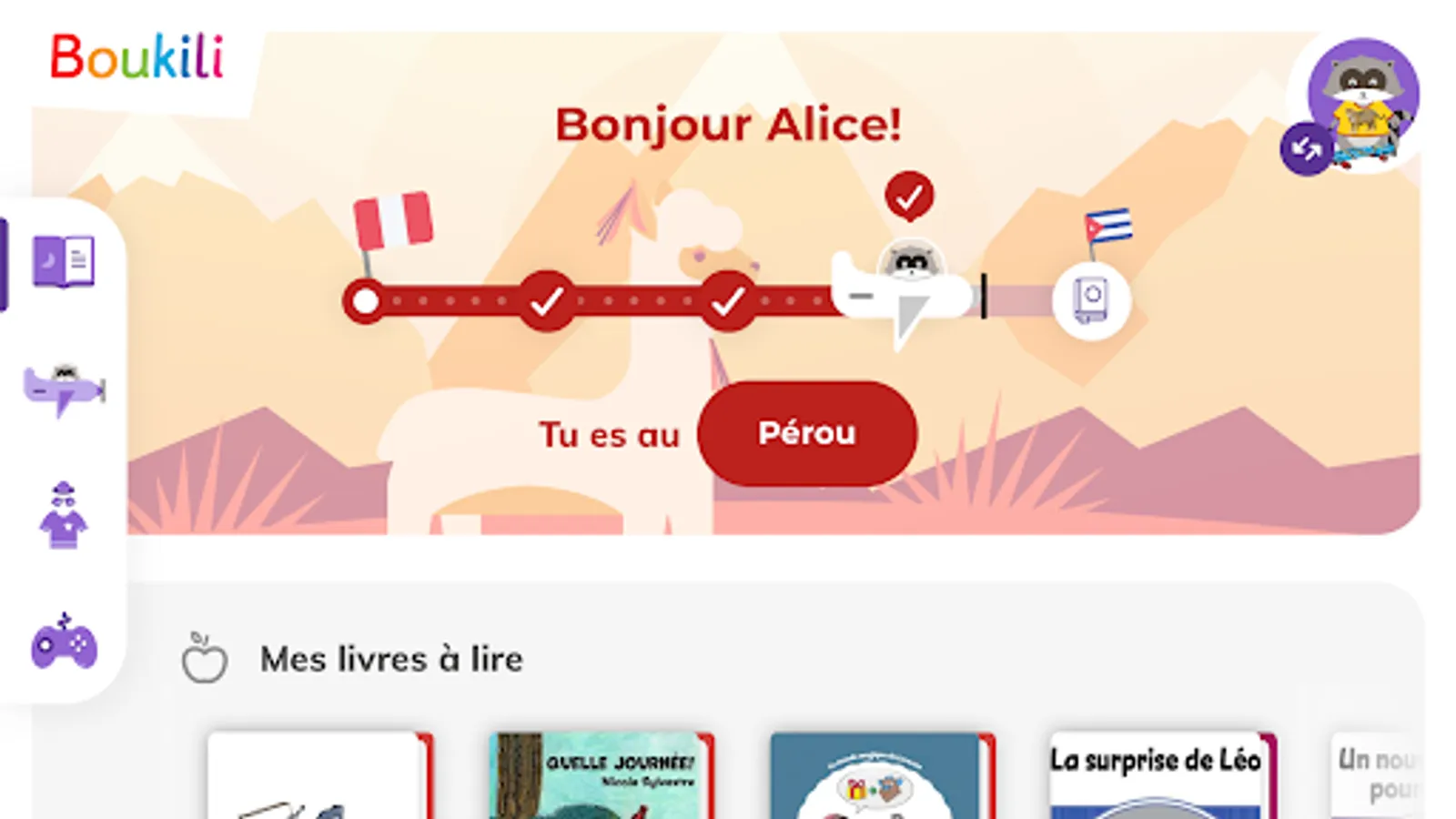 Boukili makes learning to read fun by offering quizzes and a cute avatar to customize. The theme of travel is ever-present, with the possibility of unlocking countries to discover. Children gain confidence while discovering the wonderful world of reading!
