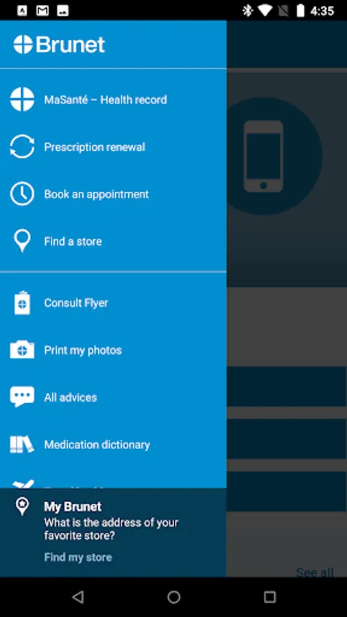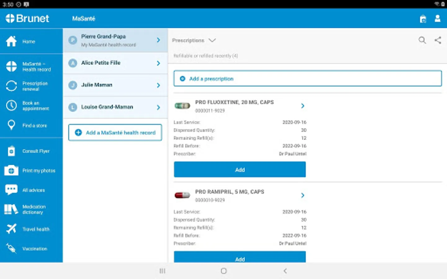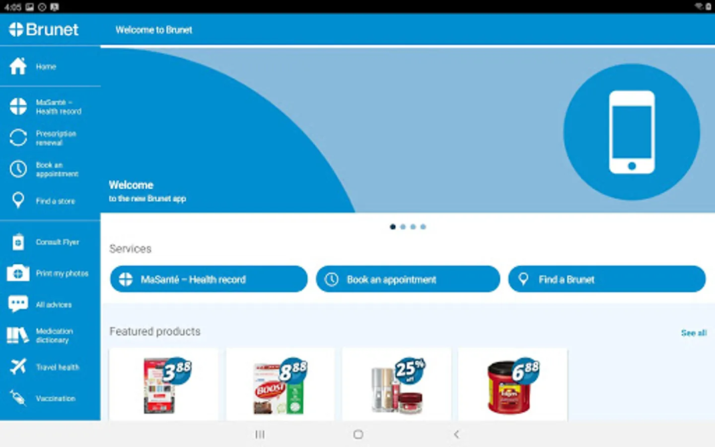 Because your health never sleeps, thanks to our brand new Brunet mobile application, consult the reference in health, day and night. Access your health record at all times, renew your prescriptions, consult the list of your medications. It is even possible to manage the health record of your family members.