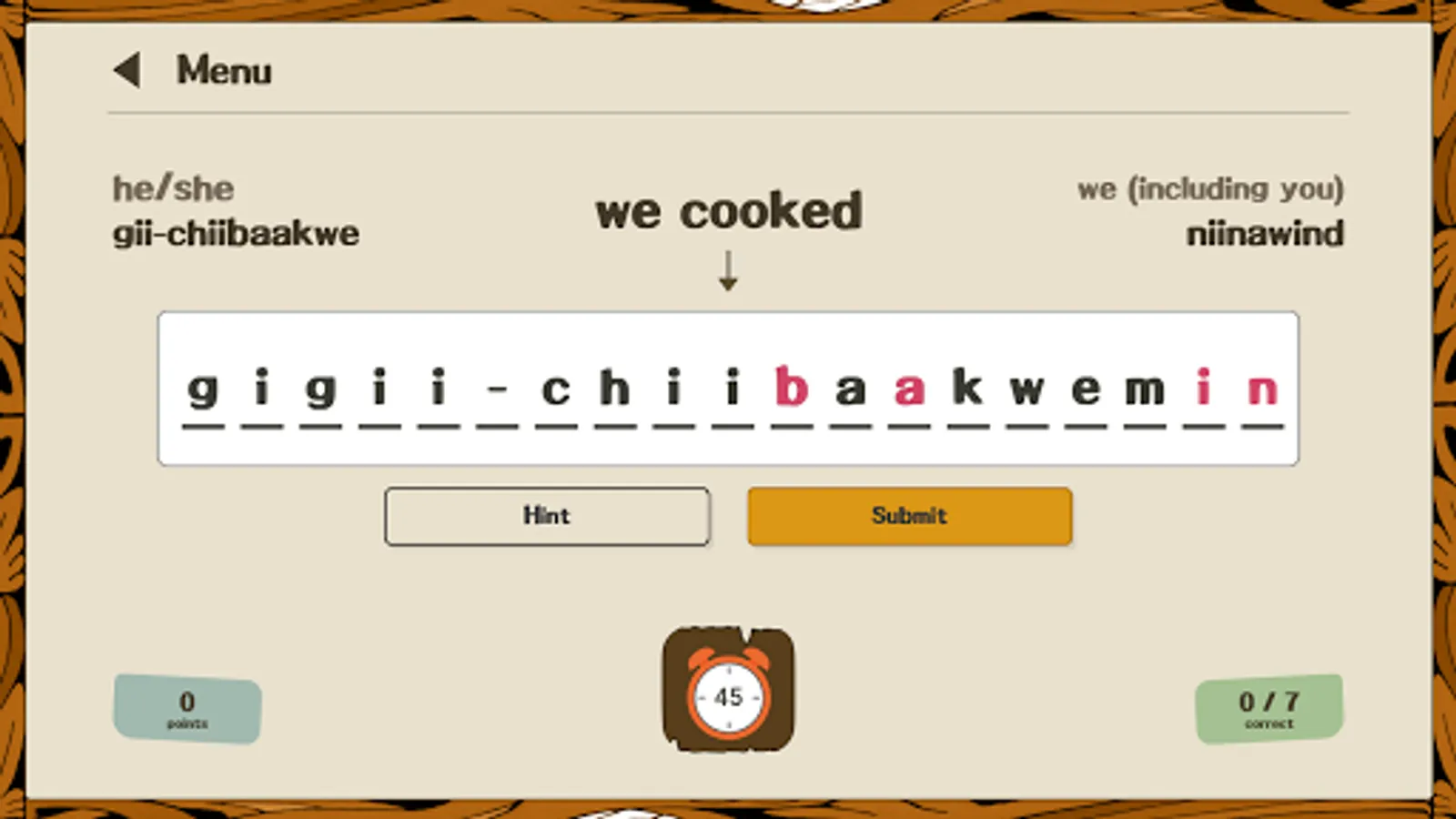 Conjugation tables are boring. This timed based action verb Ojibwe conjugation game allows friends to compete against time and each other for the most accumulated points.