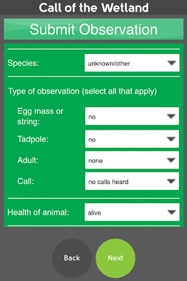 App used to record amphibian observations and calls around the city of Calgary. For more information please see the website: http://www.callofthewetland.ca