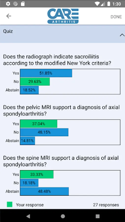 A mobile app for Rheumatologists for the dissemination of imaging educational content and high-impact rheumatology news. The app provides regular new case-based imaging content with learning points from our own experts as well as from key opinion leaders around the world. Recent publications are also accessible with added commentary from our team and others. All content allows for community engagement from app users.