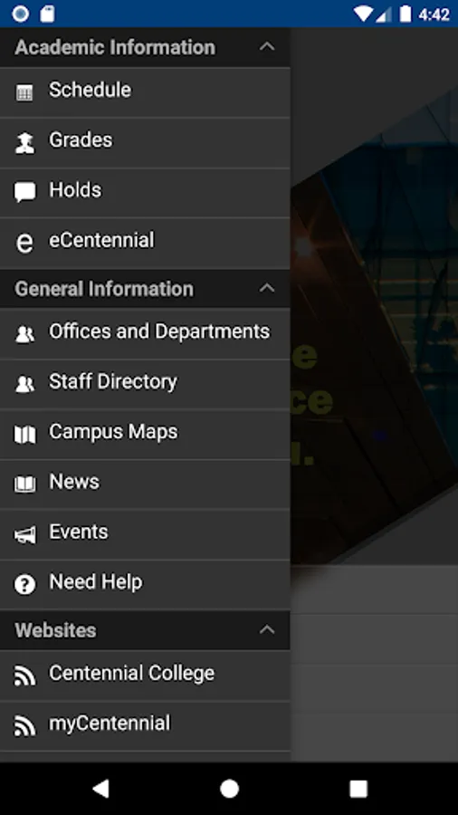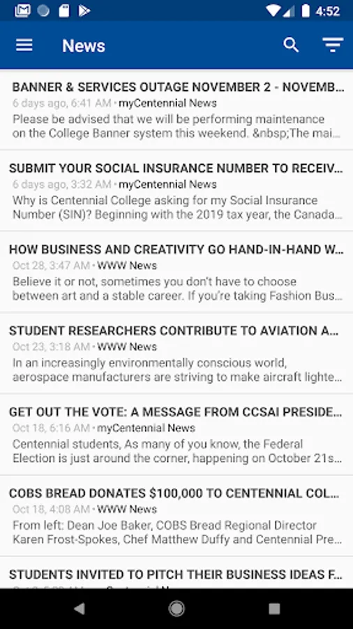 The Centennial College Mobile App will help you stay connected to Centennial College like never before. You will have access to great features that make your campus experience more effective, more efficient, and more fun.