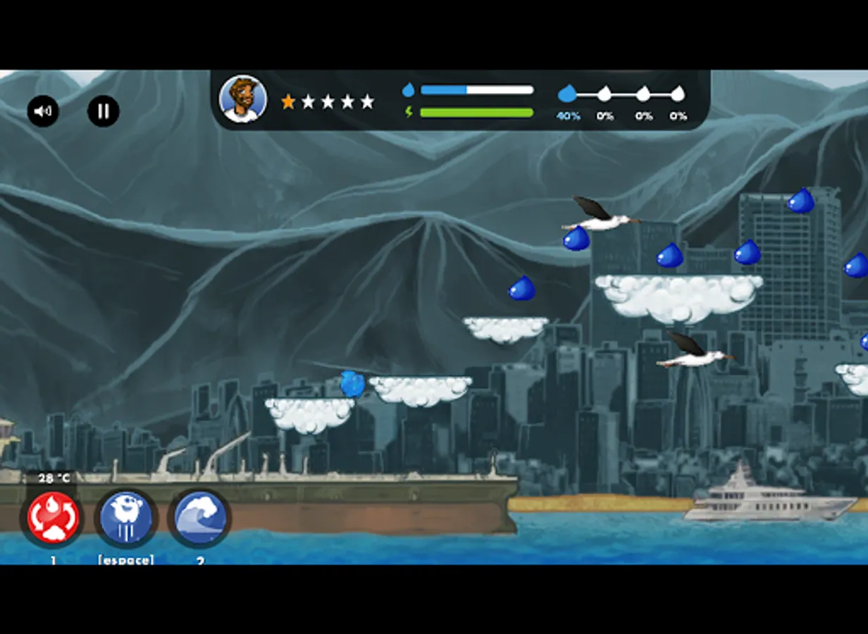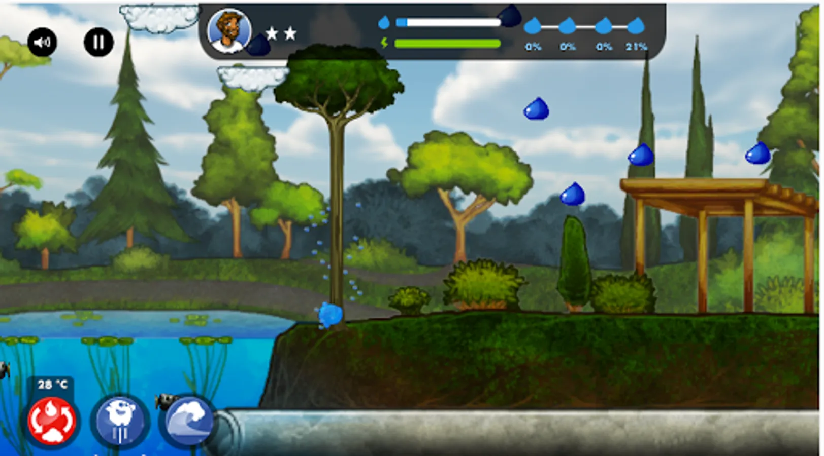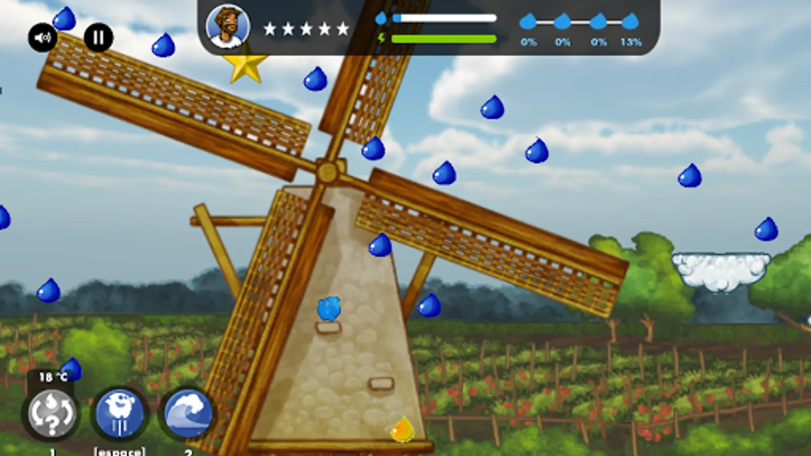 Marius and his quest in the saga of sowing is the second of two developed 2D platform games that introduces 7th and 8th grade students to various concepts of physical and human geography. The game begins when Marius, a drop of water, is surprised by a group of young seeds in his cloud house. Marius decides to bring the seedlings to their respective homes on Earth when he learns that the seedlings have accidentally followed them to his cloud during his travels.