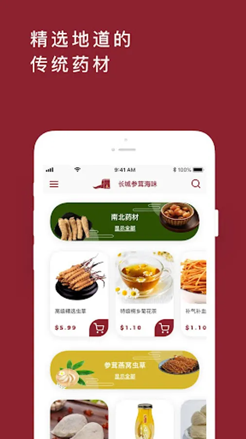 本行专营参茸、燕窝、环球海味,鲍鱼、海参、鱼肚、北美特产、北美花旗参、野生花旗参、虫草、韩国高丽参、健康食品、和地道药材等。App内下单,接收信用卡、微信支付宝、到付,当日或次日发货,微信注册就送优惠券,app内购买每次送积分优惠,快来体验吧