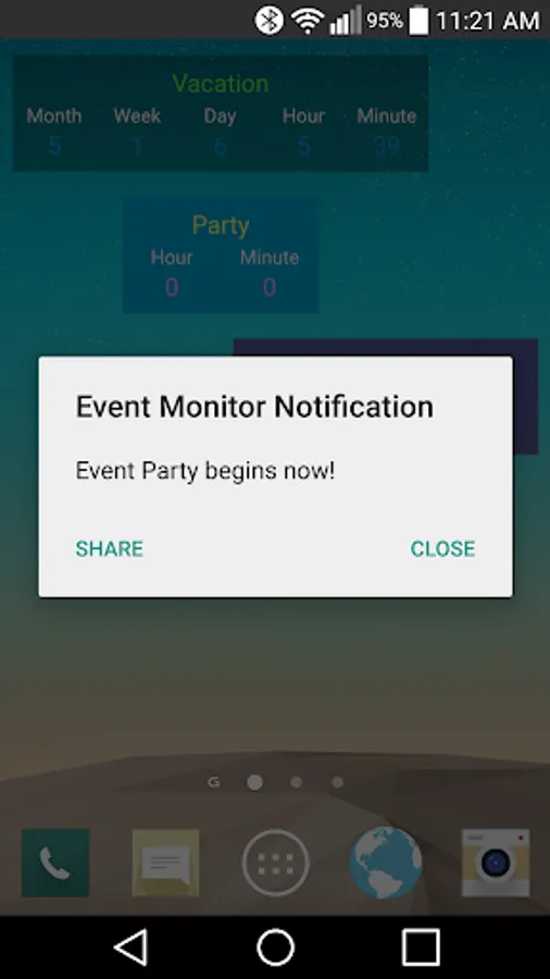 You can even have the countdown widget send you a notification text. You can set the widget to notify you on pre-determined days before your event starts and even on the day of. Imagine never forgetting your wife’s birthday, what about notifying your daughter of her curfew or that countdown for that well earned graduation? No other special occasion will be forgotten, provided they are set in your customizable Event Monitor Widget of course!.