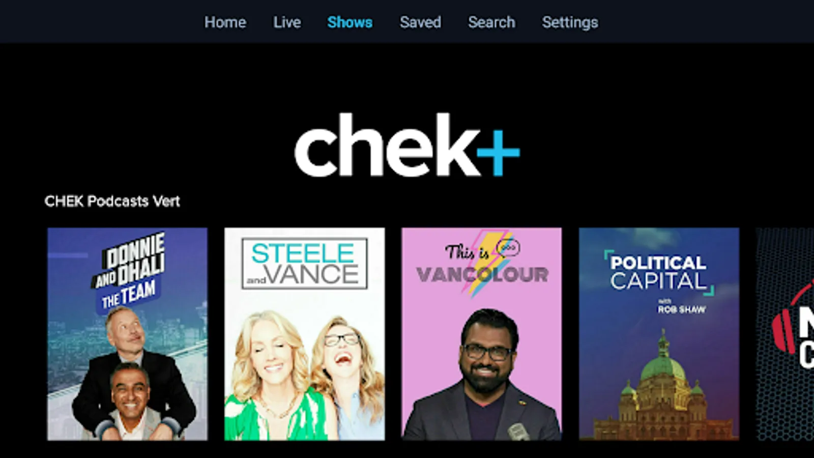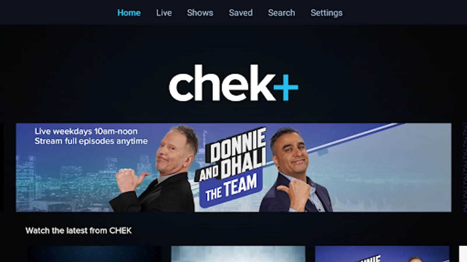 tream all your favourite local CHEK Newscasts, stories, TV shows, and podcasts across Canada, anytime. CHEK+ offers live streaming so you can watch Newscasts, Donnie and Dhali - The Team and breaking news live, or choose from a full library of CHEK content to watch or listen to anytime. No cable subscriptions required. Start streaming with CHEK+ today!