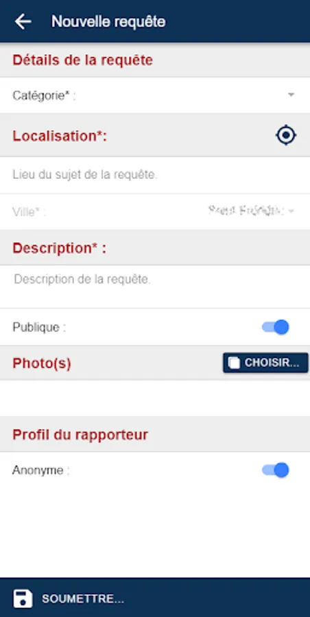 The application allows you to easily fill out an application or a complaint whether for public works, snow removal, garbage, etc. You can also follow up on your requests and see if a request already exists for the same problem in your municipality. Finally, you can request a follow-up if you wish and see the progress of your request.