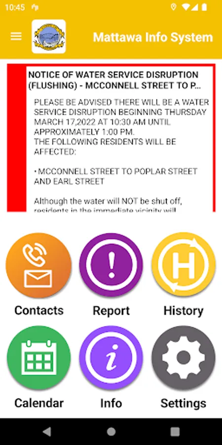Receive important, interesting information, alerts, notifications on your device, any place, any time from your town. Instantly know the information that is important to you. Select what information you want using the settings page. A very simple interface allows you to see current alerts plus a history of older alerts. Use the home page buttons to receive your news, calendars, event information, etc. You can also send your town important information such as street lights our using the report page.