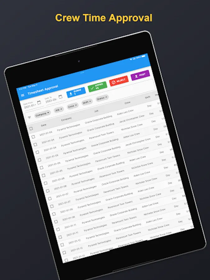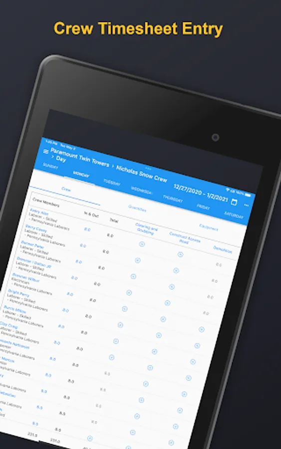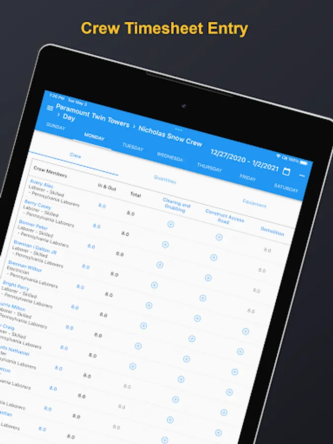With Construct Crew Time, an easy-to-use cloud-based app, your construction crews can accurately track and record hours logged (timesheet entry) and monitor productivity.