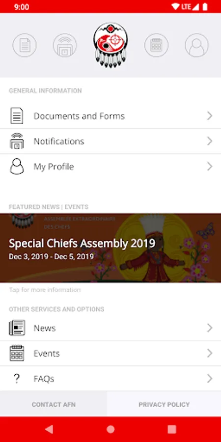 Receive up to the minute news/events, submit custom forms, gain access to important documents and receive personalized communications directly from the Assembly of First Nations National Head Office. The AFN National application has put all of these functions into one easy to use package for our members.