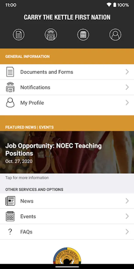 Receive up to the minute news/events, submit custom forms, gain access to important documents and receive personalized communications directly from the Carry The Kettle Nakoda Nation Head Office. The Carry The Kettle Nakoda Nation application has put all of these functions into one easy to use package for our members.