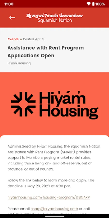 Welcome to the App of the Squamish Nation! We have developed the Squamish Nation app to be a communications platform for our community. Our app helps Squamish Nation staff, community members, band members, and the general public to keep up with goings-on around the Nation.