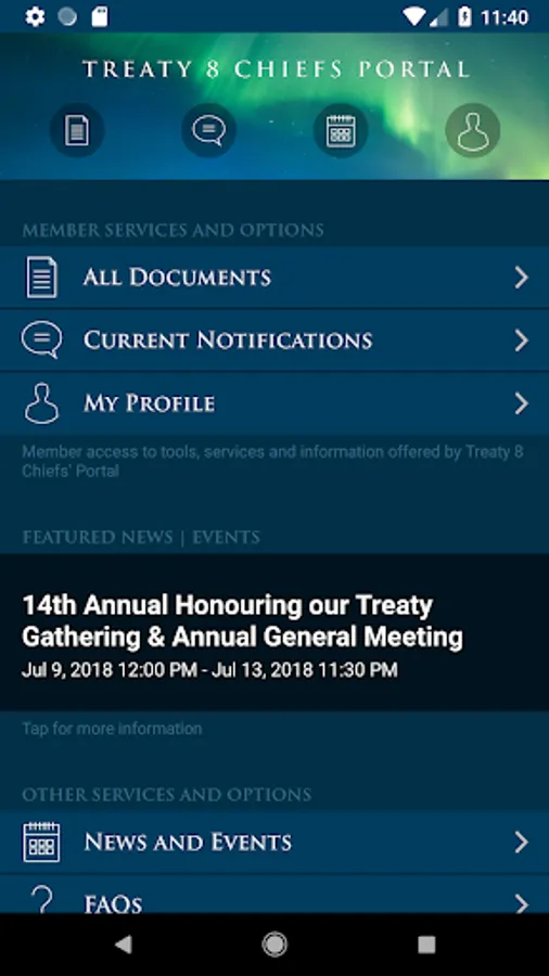 Receive up to the minute news/events, submit custom forms, gain access to important documents and receive personalized communications directly from the Treaty 8 Head Office. The Treaty 8 Chiefs Portal application has put all of these functions into one easy to use package for Chiefs of Treaty 8 First Nations in Alberta.