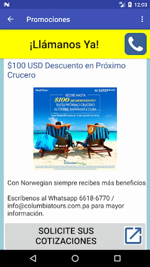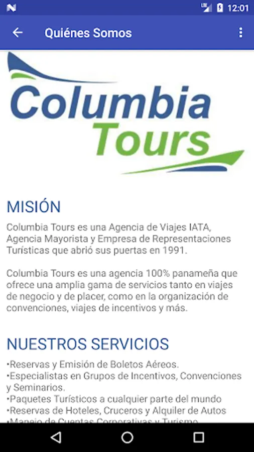 Columbia Tours is a 100% Panamanian agency that offers a wide range of services both in business and pleasure trips, as in the organization of conventions, incentive trips and more.