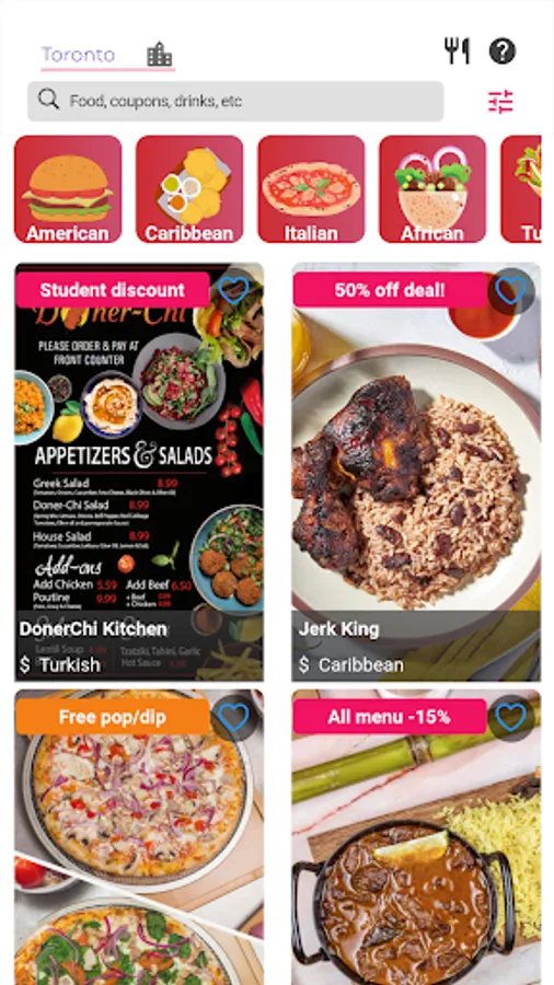 People can view restaurants that offer coupons at the current moment on the main screen. They can also switch the mode to view only coupons instead of the restaurant list.